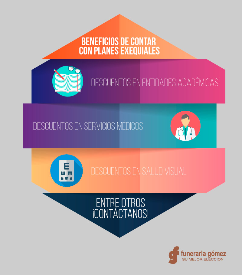 Contar con planes exequiales no solo le dará beneficios a usted o su familia al momento de partir, sino que también le dará beneficios en vida, contamos con descuentos en diferentes entidades académicas, descuentos en servicios de salud que incluye medicina general y servicio psicológico en nuestra sede principal.